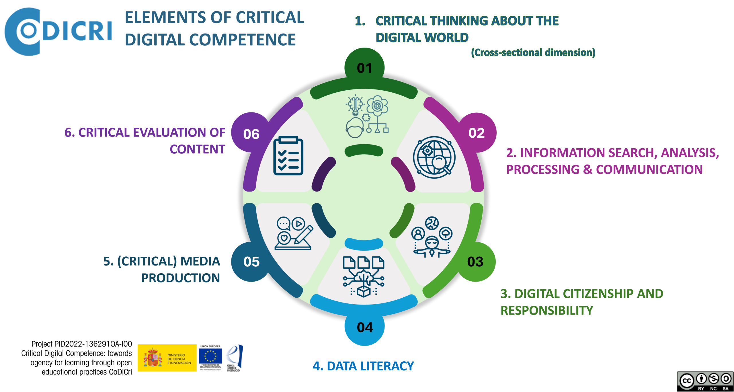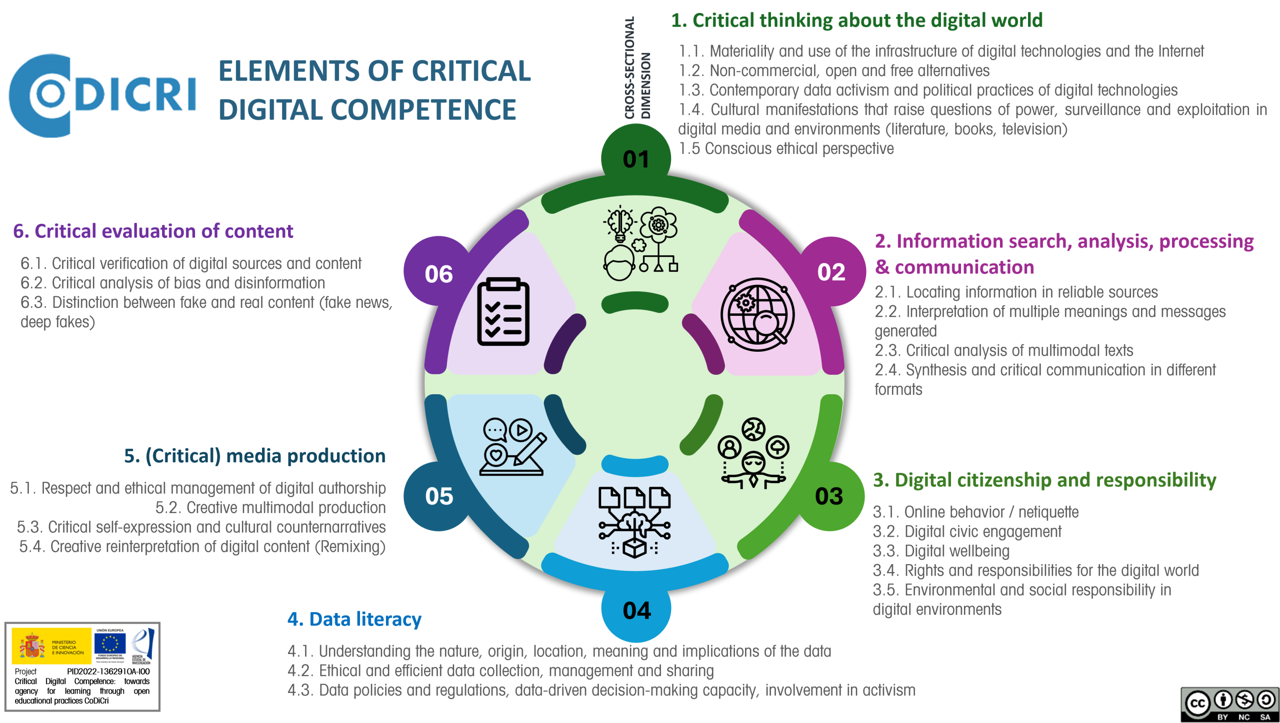 Level indicators of the Critical Digital Competence framework.